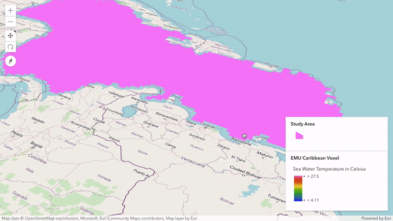 The AnimatedFlowRenderer (released in beta) allows you to visualize your UV or MagDir raster data with animated streamlines. This renderer can be used to visualize flow direction and magnitude information in ImageryLayers and ImageryTileLayers in a MapView. The direction of the raster defines the direction of movement, and the magnitude defines the visible length of the streamline.