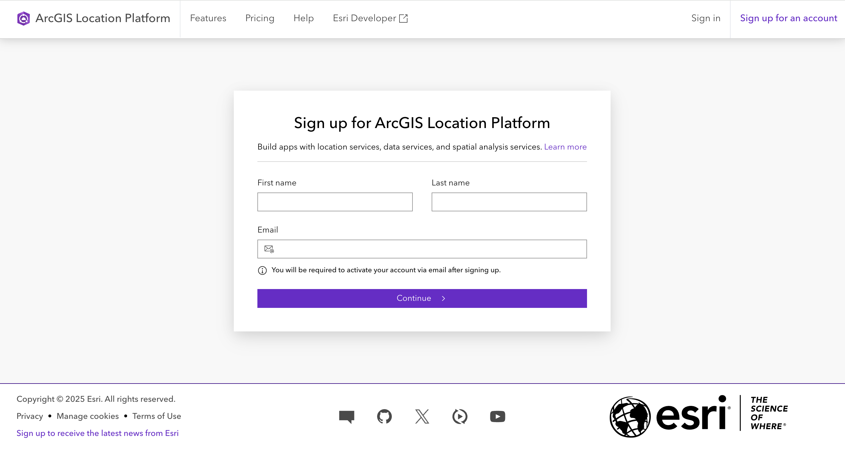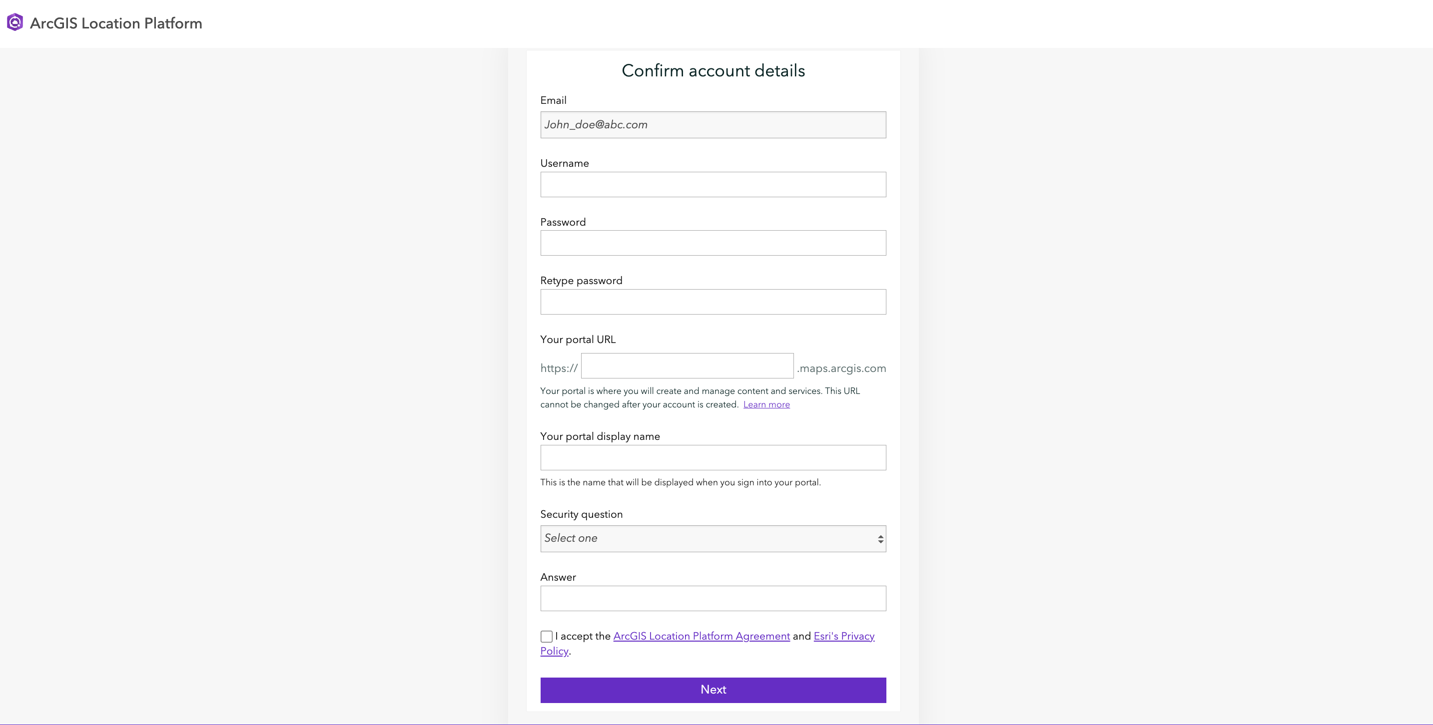 Create an ArcGIS Location Platform Account