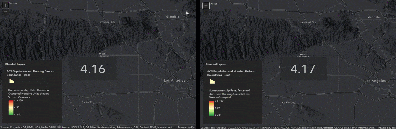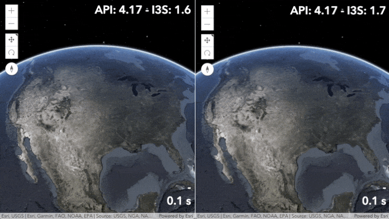We also improved the experience when loading feature-dense datasets. As you might already know, features are requested in feature tiles which are built for high-performance caching. The API draws features incrementally as they are loaded, which results in a visual progression of the loading tile. This can be observed in the animation above which compares loading a feature layer with more than 1.1 million building footprints in version 4.16 (left) and 4.17 (right).