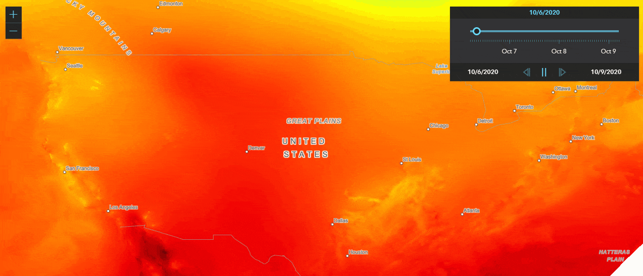 WMSLayer now supports layers that are time enabled. You can use the TimeSlider widget to animate your layers over a period of time, or you can set a timeExtent on the layer to only request data that falls within the given time extent. The timeInfo property is set at WMSLayer initialization if the layer has one or more time dimensions.