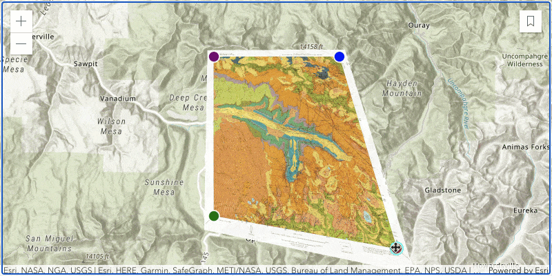 If you are overlaying images or videos on the map, control points enable you to georeference specific locations of the media to position, skew and transform it on the map. In an upcoming release, there will be a widget enabling the end user to interactively adjust the media.