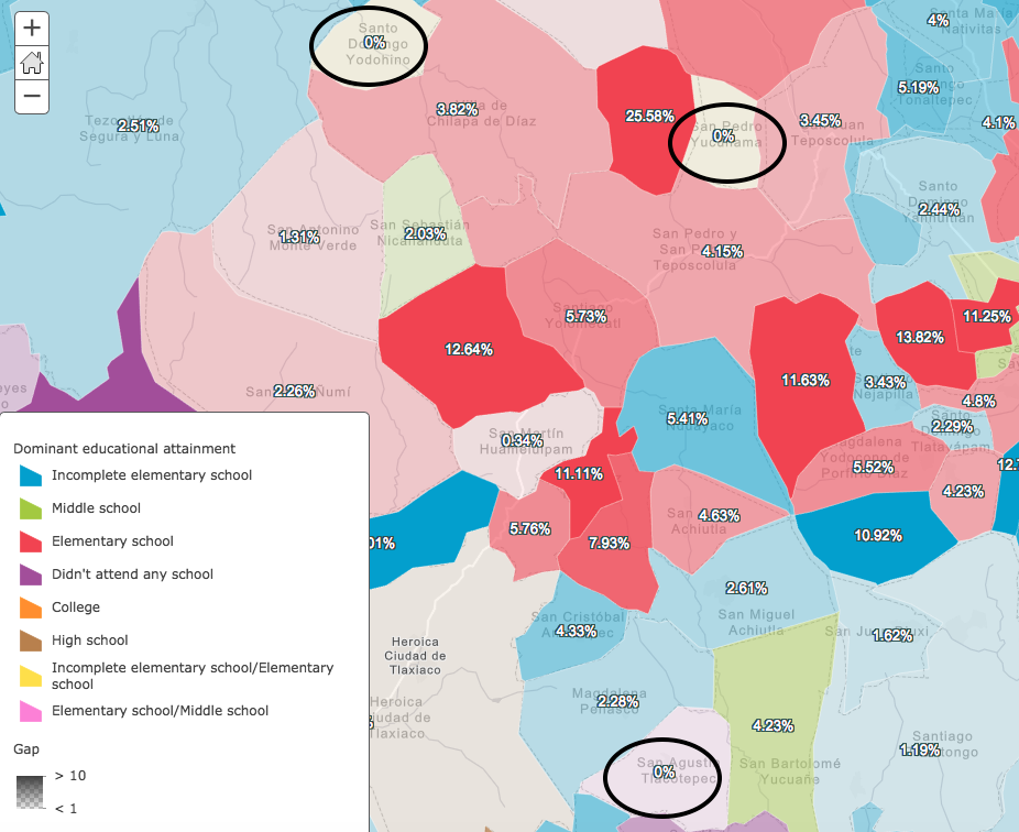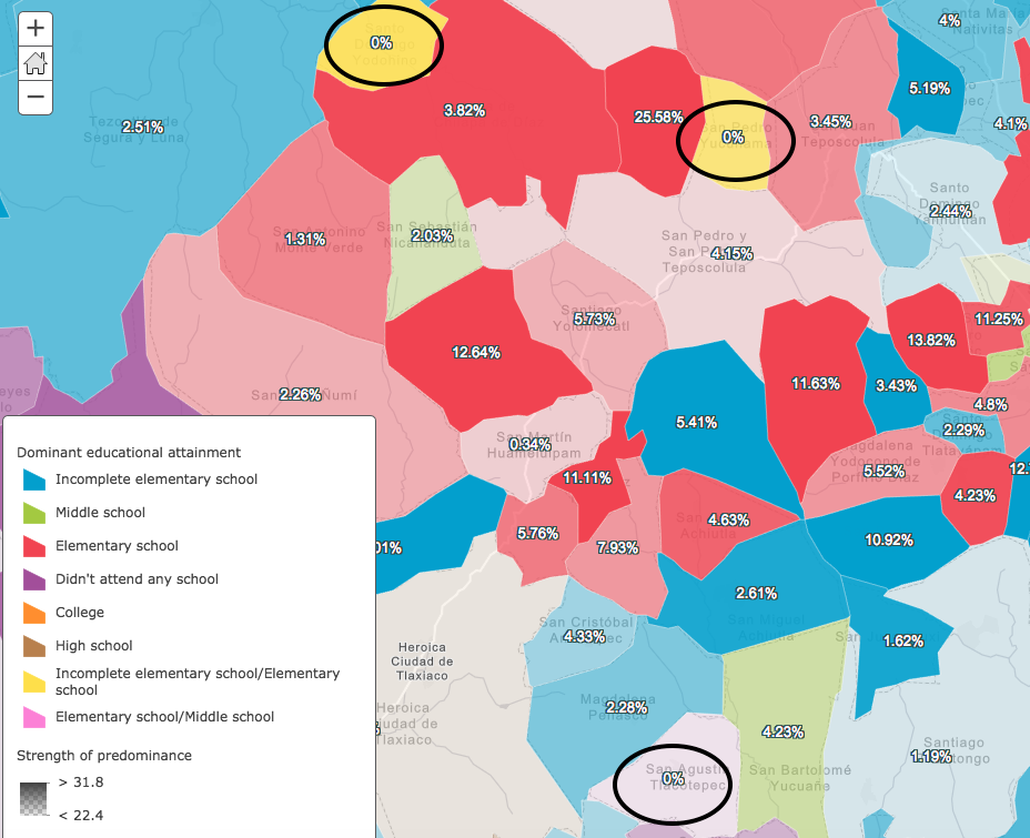 In our Dev Summit presentation I shared this webmap, which depicts the predominant educational attainment achieved by people in Mexico on the municipal level.