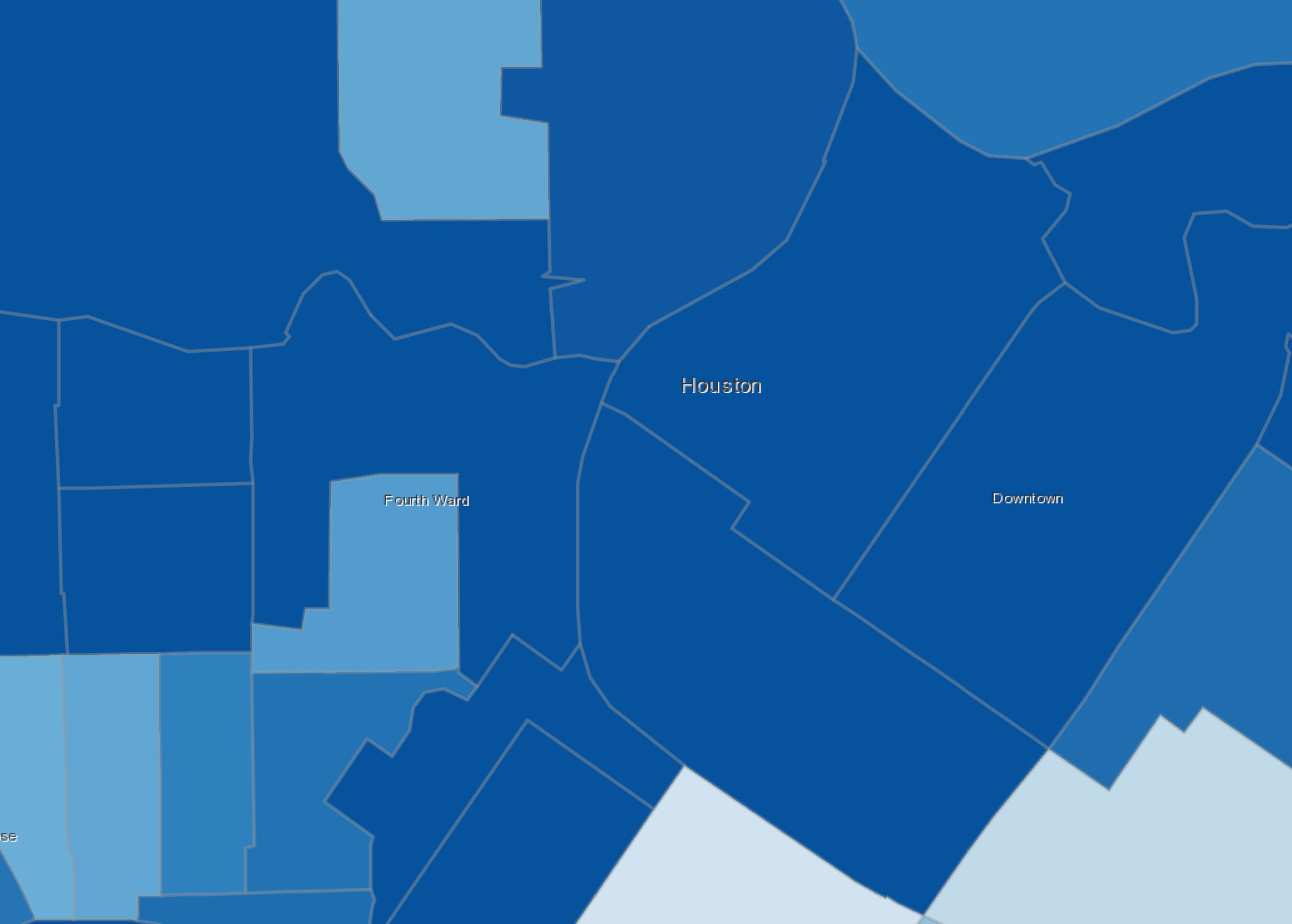 For example, the image below shows outlines that are so thick they completely obscure the fill color of small polygons in the downtown Houston area.