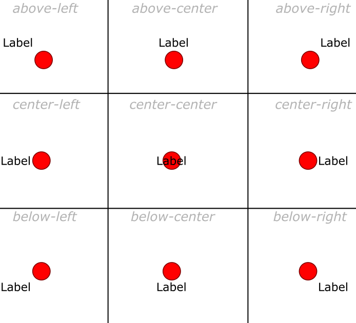 - When labeling points the placement is a string that specify the relative vertical and horizontal position of the label with respect to the feature.