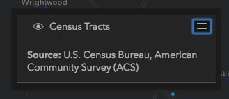 LayerList panels not only allow you to view a legend inside a toggle-able container that controls the visibility of the layer, but also provides a space for any custom content, including text, HTML elements, other widgets, and interactive charts from third parties.