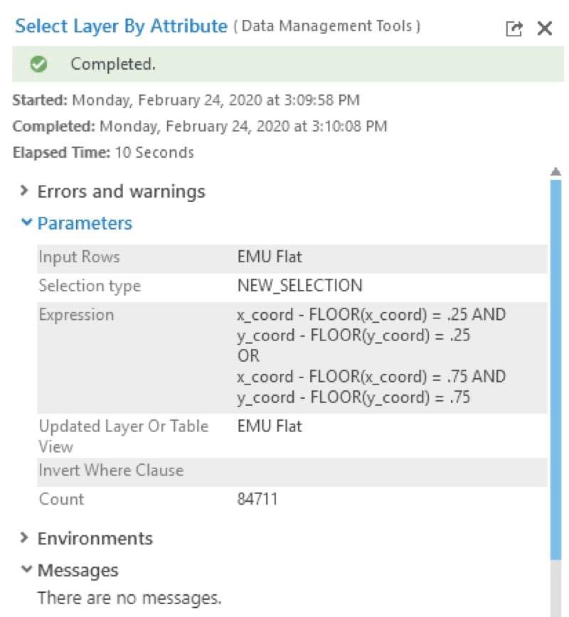 Our first order of business was to reduce the number of rows in the table. Since the original layer has up to 102 points (or rows) at each x/y location, we felt we could flatten the table to one row for each x/y coordinate.