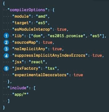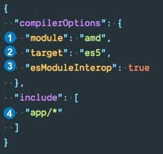 This is the bare minimum configuration you would need to compile TypeScript for use with the ArcGIS API for JavaScript. In this configuration we are doing a few things.