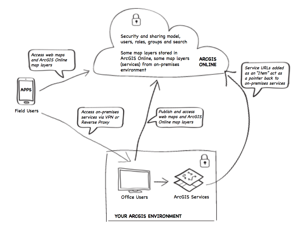 Hybrid ArcGIS Online deployment architecture
