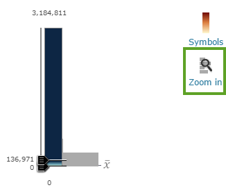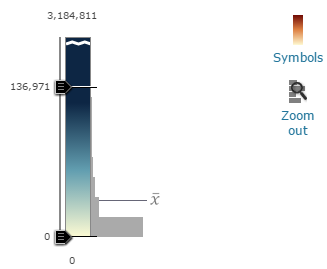 Tip: Have an outlier in your data? Zoom in to see the values closest to the mean in the histogram. Pull the handle away from the outlier value to see how it affects your map.