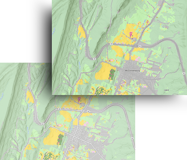In this version a subject layer has been added, with a 50% transparency setting. The most noticeable difference is in the interaction with roads.