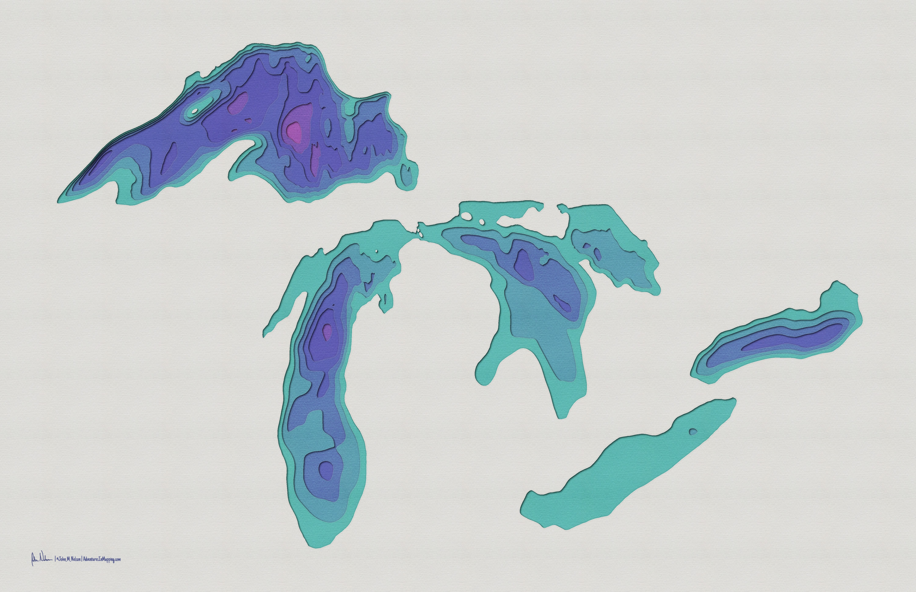 And I applied these images to this set of bathymetric filled contours I made from Great Lakes DEMS.