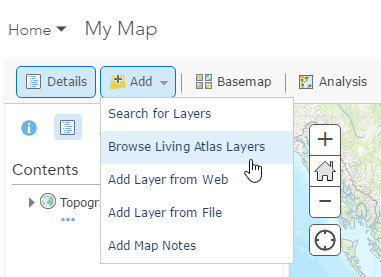 Click Add, then choose Browse Living Atlas Layers.