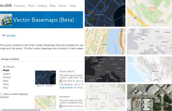 Updated December 15, 2016: The Esri Vector Basemaps are no longer in beta release and are now available to use in production web maps and apps. The best way to access them in ArcGIS Online is through the Esri owned Vector Basemaps group, which contains the latest set of web maps and tile layers. See this blog post for information related to this update.
