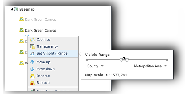 Our basemaps are designed to work in a narrow tonal range, so that they remain in the background and your subject information is promoted. However, with the customization capability of vector basemaps there is no reason why some of the basemap content can’t become part of the map subject. I adjusted a couple of items to work with my map: