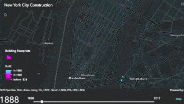 The 4.5 version of the ArcGIS API for JavaScript allows users to opt in to rendering FeatureLayer with WebGL (beta) in 2D MapViews. This is a major step in improving the overall performance of FeatureLayer, providing you with the ability to display more data in the view and rapidly update their visualization. For example, the WebGL-enabled FeatureLayer in the image below displays a layer containing more than one million polygons and updates the layer’s renderer at 60 frames per second as the user moves a slider.
