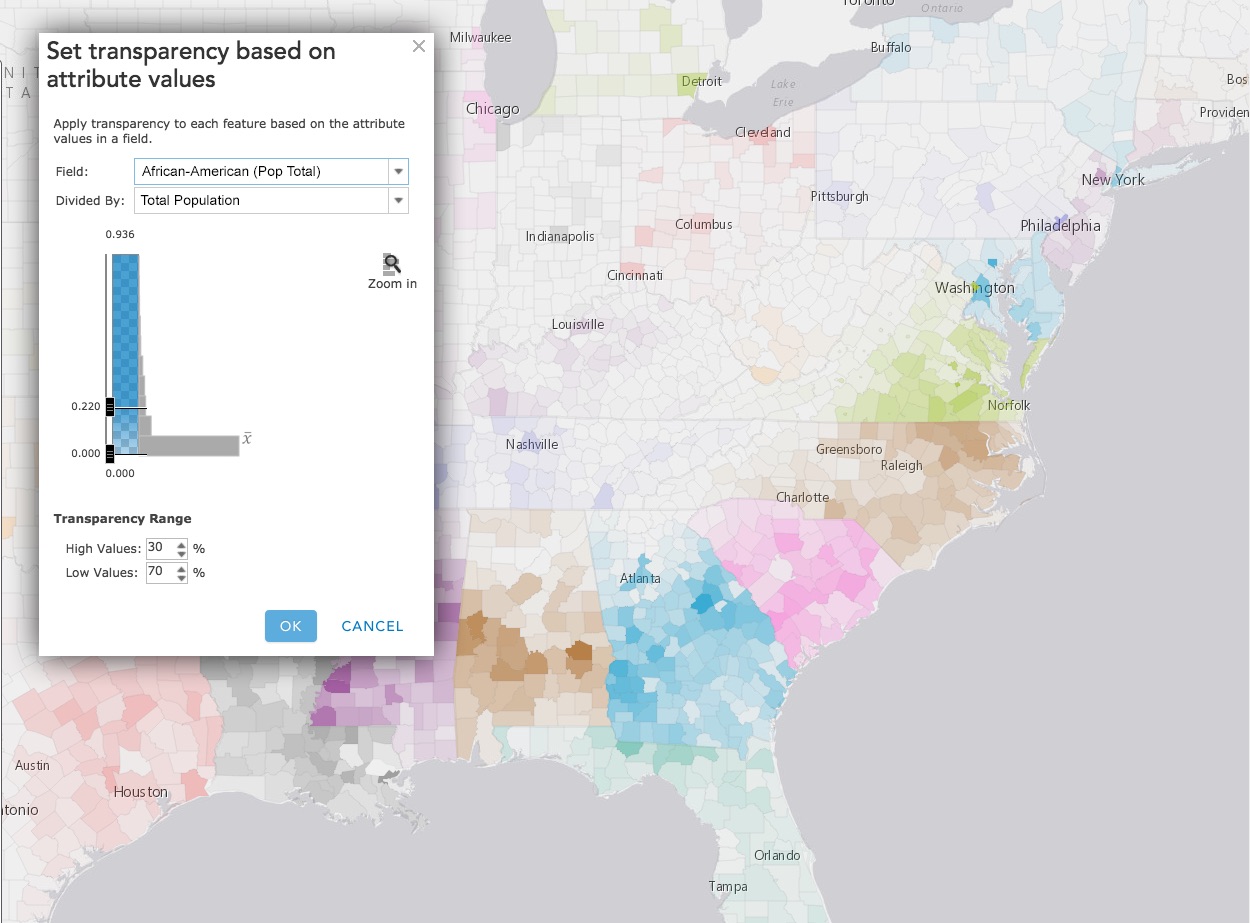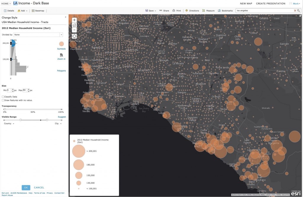 We added new ways to symbolize your data, ‘smart’ defaults, and data-driven workflows to the ArcGIS Online and the Portal for ArcGIS map viewer. Continuous color ramps and proportional symbols, improved categorical mapping, heat maps, and new ways to use transparency effects to show additional details about your data are all now delivered via a streamlined and updated user interface.