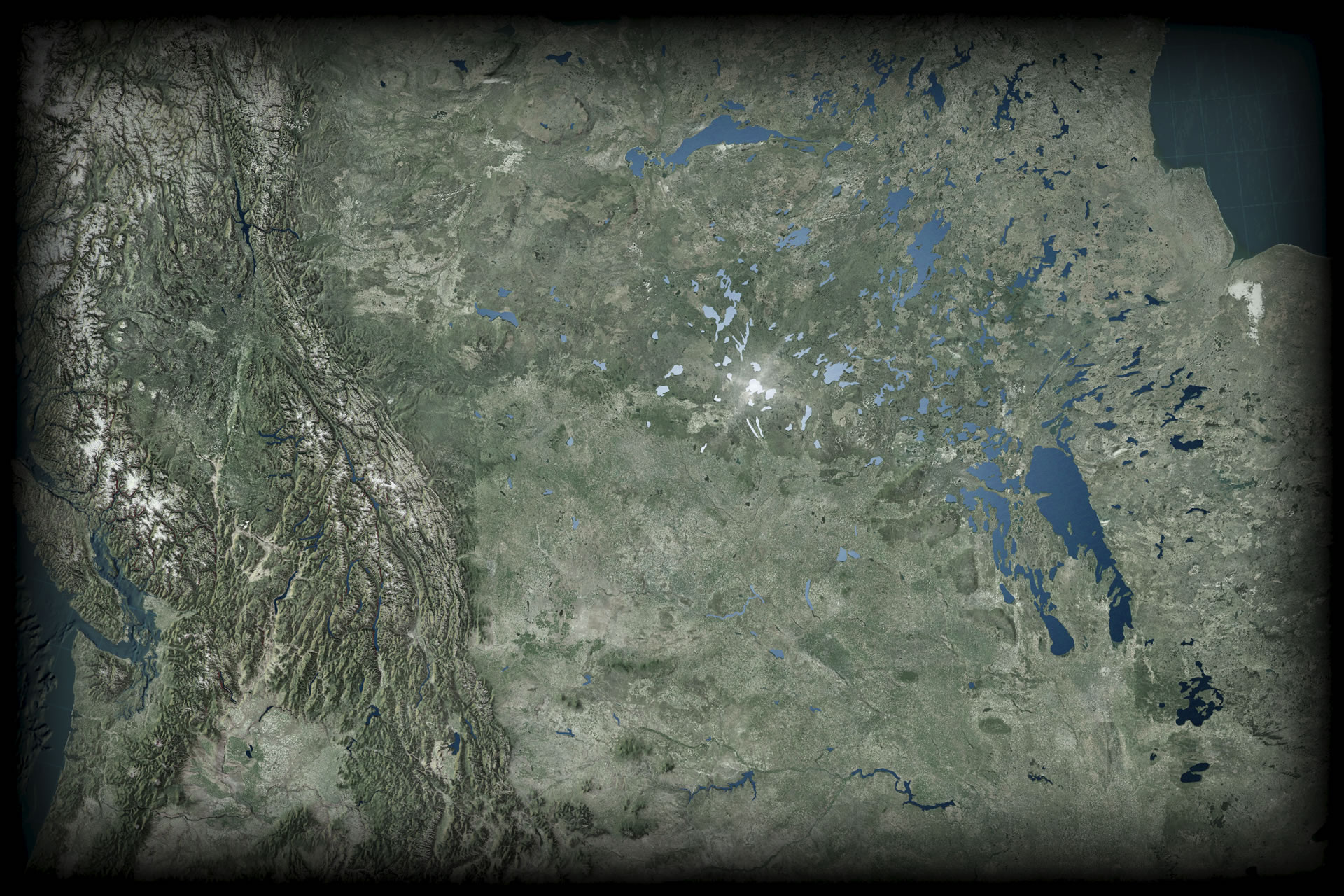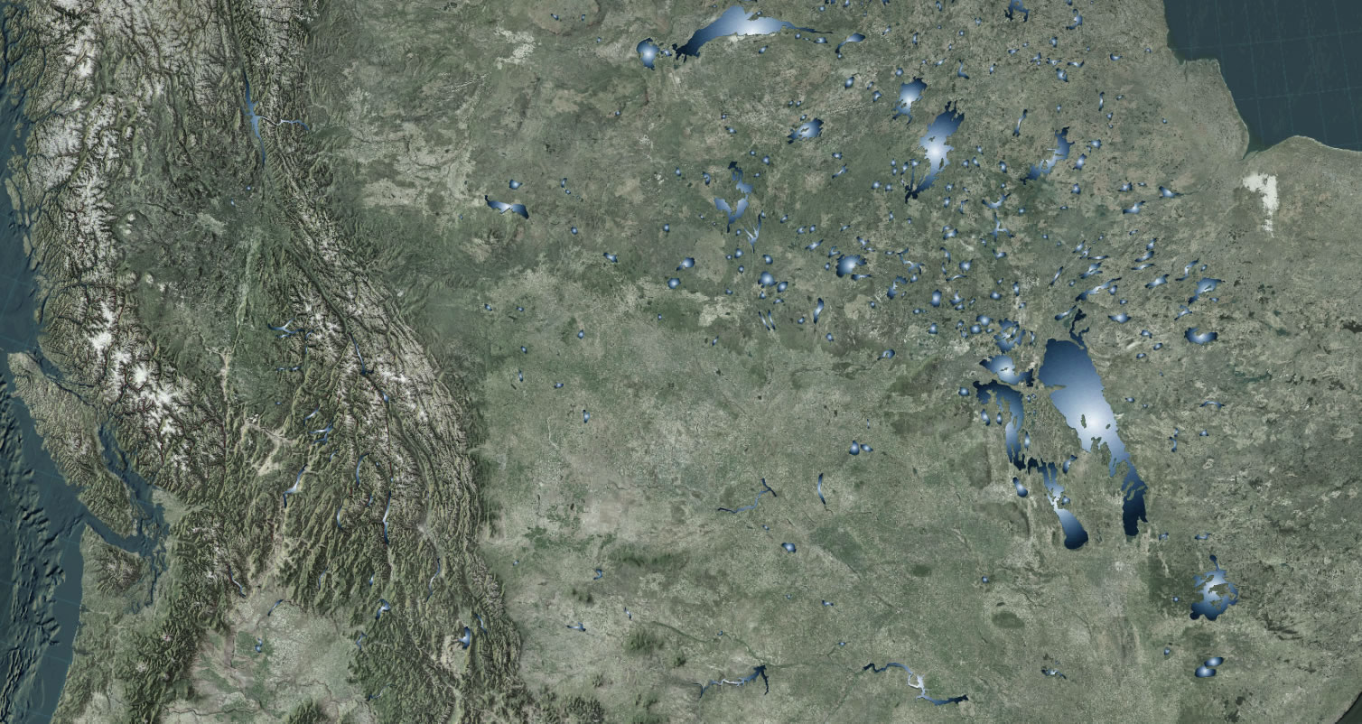 Here is a look at northern Canada, home to thousands of lakes. You can almost hear the mosquitoes from here. A handy test bed: