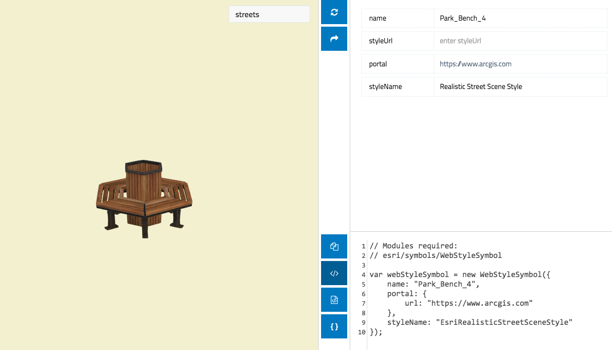This can be a handy tool for developers, allowing them to get immediate visual feedback when altering symbol properties. It is also helpful for the more geographically-inclined analyst who is getting started with web development and unfamiliar with writing code for creating visualizations with the JavaScript API.