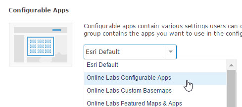 You can use other configurable apps by creating a group, adding the configurable apps you’ve created to the group, then choosing the group from the dropdown list. Below Online Labs Custom App Templates is the name of the group containing the custom configurable apps we want to use in our organization.