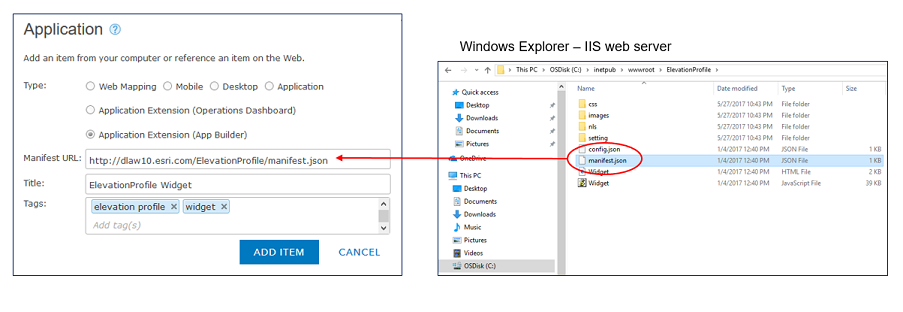 At the 10.5.1 release, a new Portal item type was introduced: Application Extension (App Builder) – which is meant for registering custom widgets for Web AppBuilder. Custom widgets are hosted on your own web server (e.g., IIS). Portal administrators would add each custom widget to Portal as a new application extension item, by referencing a URL to the widget’s manifest.json file. The newly added custom widget needs to be shared (as appropriate) with other Portal members and/or groups so they can access and use it in Web AppBuilder in Portal for ArcGIS.