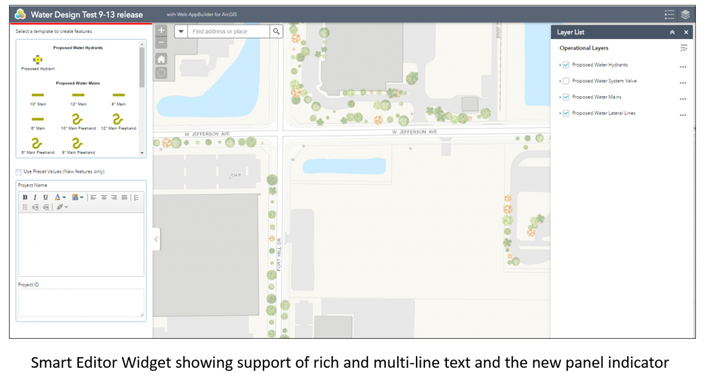 Smart Editor widget – Some enhancements include: the option to restrict editing to just the feature owner; checks if the signed in user belongs to an editing role, if not the widget will be disabled; and the template picker is based on layer visibility.