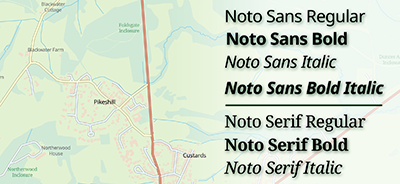 For the Great Britain map, I used one of the faces we make available in Esri Basemaps: Noto. In fact it is a compatible pair of faces – Noto Sans and Noto Serif.