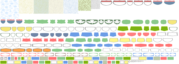 Note how road shield backgrounds dominate this file, not surprisingly for the Street Map. The shield symbols need to accommodate multiple shapes and colors, and different lengths of text string, so there is more than one version of each. However, don’t miss the city dots at the bottom or the two transit symbols near the bottom left.