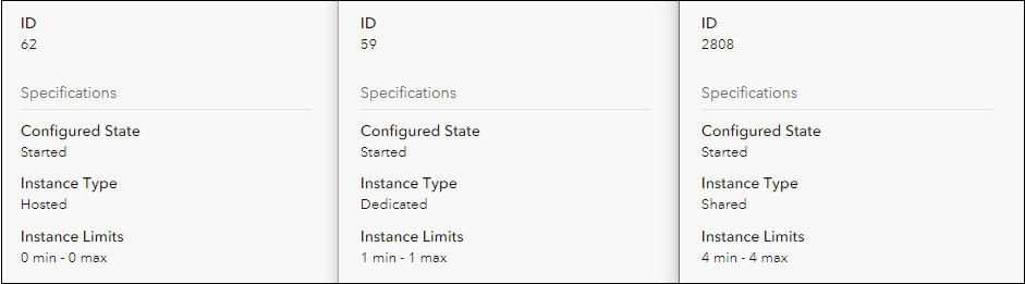 To determine if a registered feature service in Monitor is hosted or referenced, under the Monitoring tab > view the service’s overview page. On the left side of the page, under Status > Specifications > the Instance Type property will show if the feature service is hosted (instance type = hosted) or referenced (instance type = dedicated or shared). For hosted feature services, their Instance Limits property will also display as 0 min – 0 max.