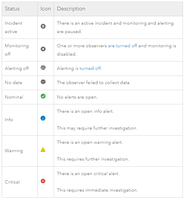 Figure 8: ArcGIS Monitor 2023.3 status indicators for components