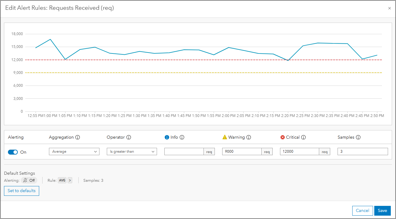 Figure 9: Edit Alert Rules window for GIS Server 1’s requests received metric.