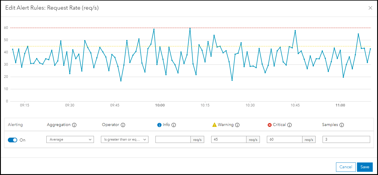 Metrics of different component types are described in the metrics reference documentation. Leveraging alerts enable you to proactively manage your enterprise GIS. In other words, alerts can help identify possible issues that affect enterprise GIS health and performance.