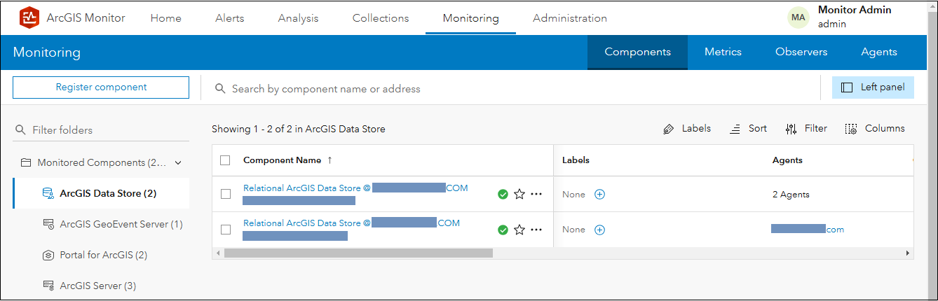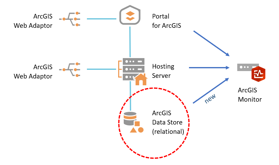 - ArcGIS Monitor can register and collect metrics on the ArcGIS Data Store (relational)