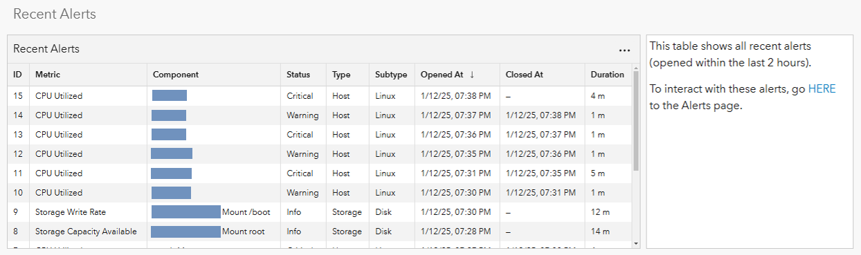 This release includes many other enhancements such as: additional metrics collected for the ArcGIS Server and the ArcGIS GeoEvent Server components, and the display of CA certificate and software license expirations on the Monitoring page. A complete list of updates are listed in the ArcGIS Monitor 2024.1 release notes.