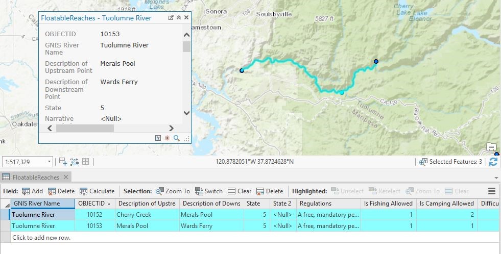 Another method used to add data to the NRRD is retrofitting pre-existing data, and pointing attribute fields from the existing data into the NRRD template. This has been common and effective with state-level water trail programs whom often already track data on recreational rivers and access points. Creative field calculating and ArcMap’s Simple Data Loader tool is used to accomplish this.