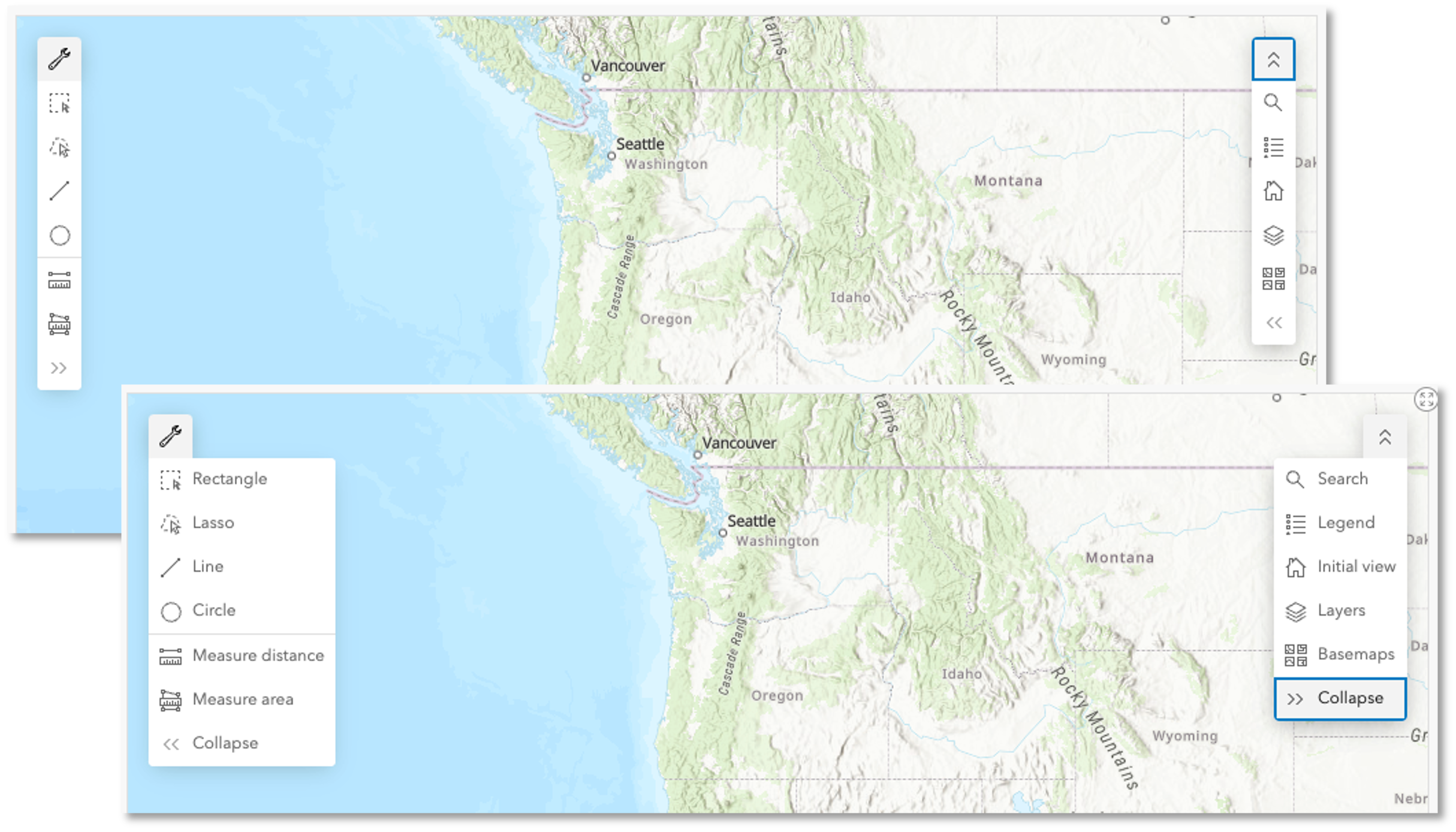 When viewers aren’t using tools on the map, they can be fully collapsed, leaving the view of the map unobstructed.