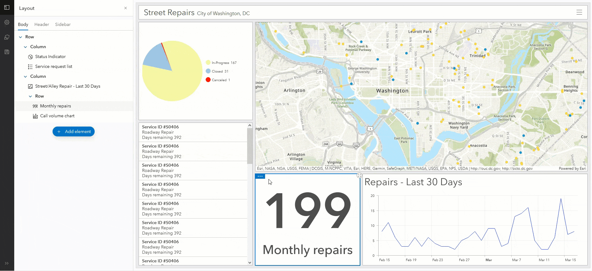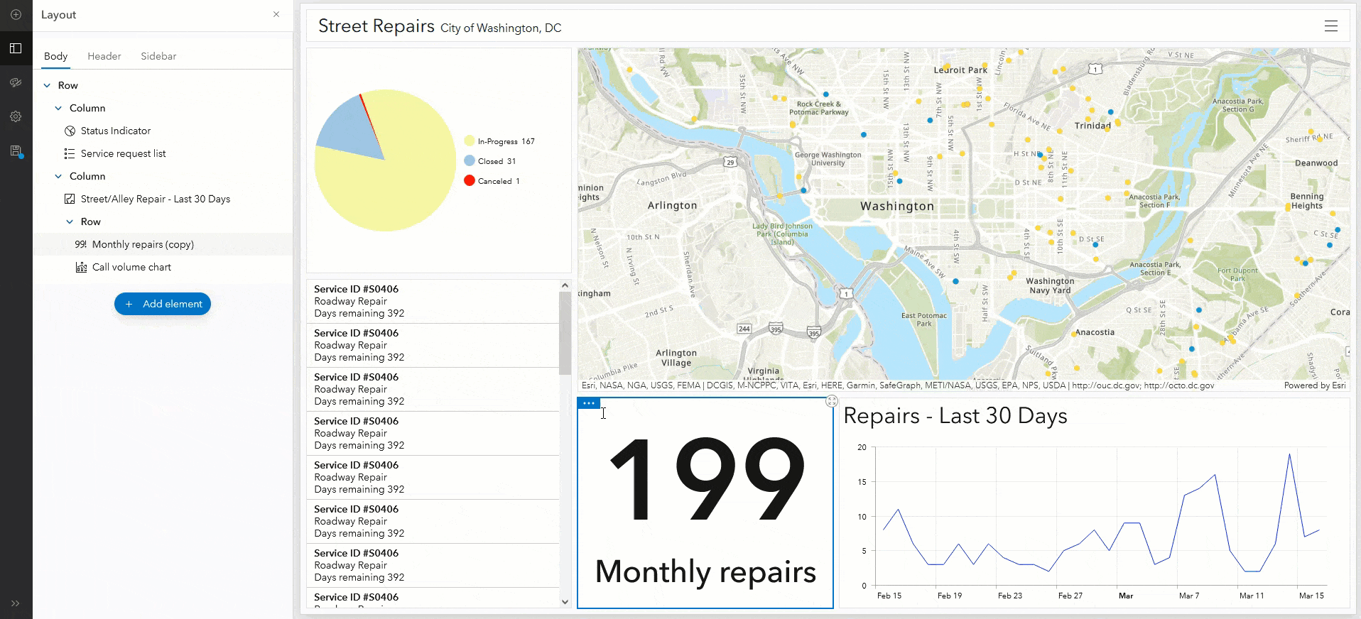 Spring is here and so is the March 2022 update of ArcGIS Dashboards. Last update, we introduced a new user interface, with the goal of making dashboard layouts easier to manage. With this update, we’ve added a new way of adding elements directly to your dashboard’s layout, intuitive action configuration, and other enhancements to make authoring dashboards even better. We also have some important product announcements to share with you.