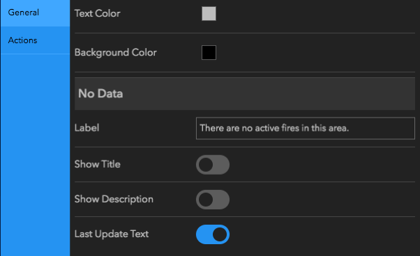 When authoring and configuring elements, you may encounter a flow were the visualization is empty. Perhaps it needs to be filled by a selection from another visualization, maybe it’s content is driven by the map extent. Regardless of the reason, having control over what happens inside of your element when there isn’t any data is important. In our March release, you could create your own label for No Data. We have added the ability to turn off the Title and Description. Doing so provides additional focus on what is required to fill your visualization with data.