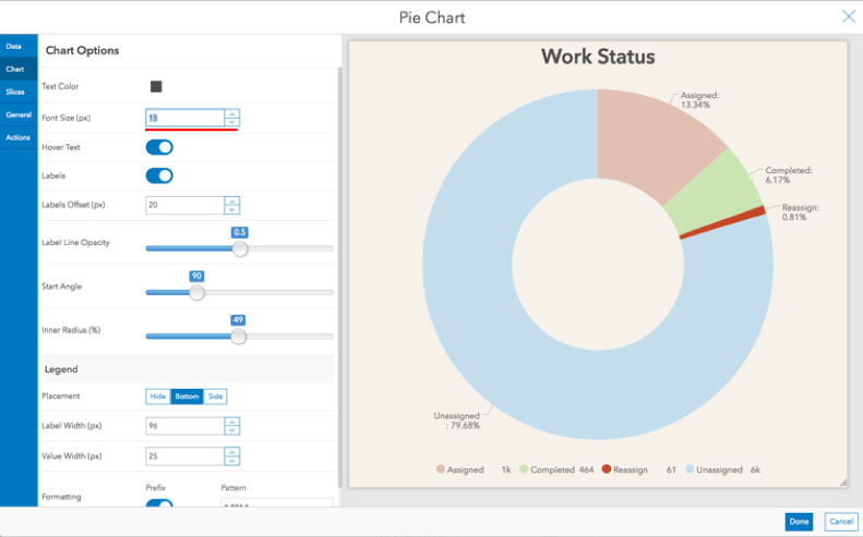 The label and legend text size for pie charts are now configurable so that your slices are easily understood.