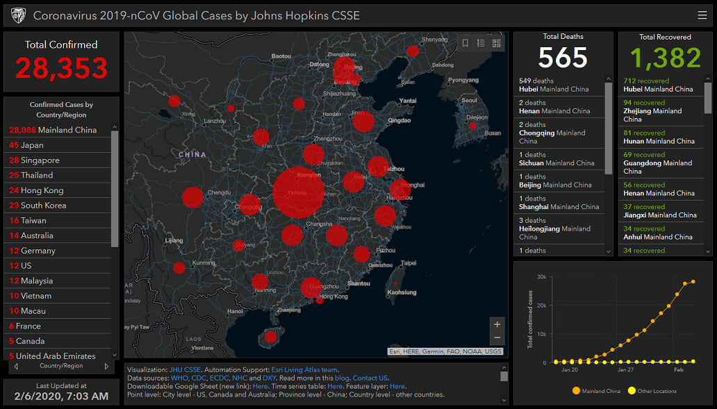 Coronavirus 2019-nCoV Global Cases by Johns Hopkins CSSE