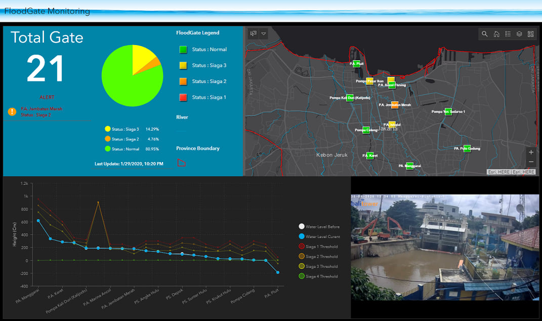 On Jan 1, heavy rains caused severe flooding in Jakarta, Indonesia. The Emergency Spatial Support Center (ESSC), a branch of esri Indonesia, created a dashboard to help monitor floodgates in the city. Read this blog to learn more about this use case.