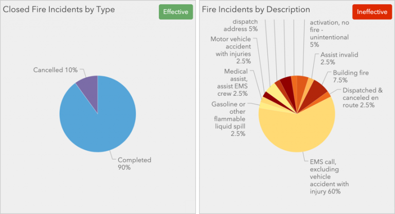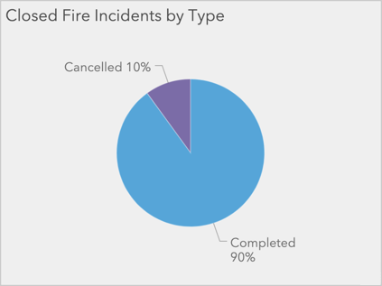 Let’s say we are building a dashboard for a fire chief which is reviewed daily to understand statistics of recent fire incidents. An effective use of a pie chart would be to display the breakdown of closed incidents by the percent completed vs. cancelled.