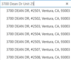 With the partialSubaddress parameter, you can return a list of the apartments when users enter part of an apartment name. For example, “3700 Dean Dr Unit 25” will return a list of apartments that start with “25”.