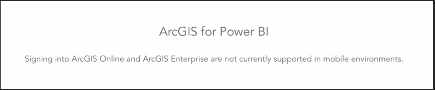 As a general note, this process is aimed toward reports that will live on an internal or private website (like a SharePoint page). ArcGIS for Power BI is currently not supported in an ISV environment. An example of this environment would be using the Power BI Playground to develop a Power BI report. Further, Power BI reports that contain an ArcGIS for Power BI component cannot be used in a Power App.