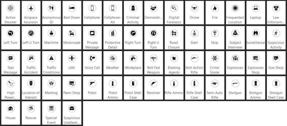 We heard you loud and clear, and over the last few releases we’ve been adding new and relevant point symbols to the Intelligence style. At the ArcGIS Pro Intelligence 2.7 release we added symbols that can be used for dignitary protection, law enforcement, investigations, pattern of life, communication and more.