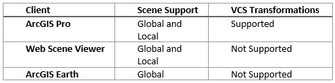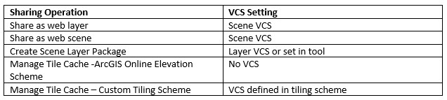 - The share as web layer and share as web scene workflow gathers the HCS/VCS information from the ArcGIS Pro scene properties
