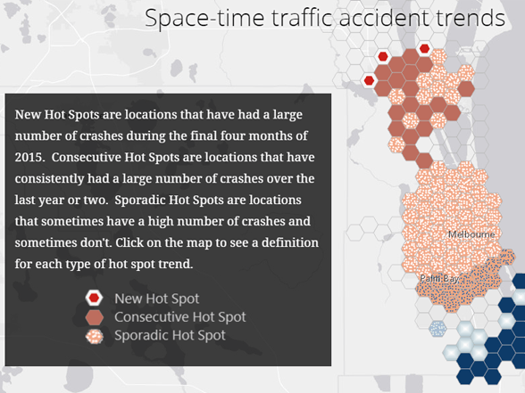 This space–time trend analysis of Florida auto crash data factors in time of day and underlying road conditions to identify new hot spots.