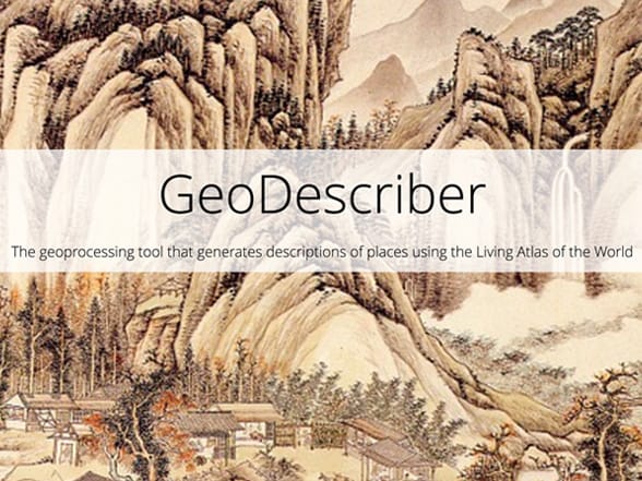 GeoDescriber analyzes landscape layers in the Living Atlas of the World to generate a short narrative of descriptive text to characterize the most important elements about a landscape.