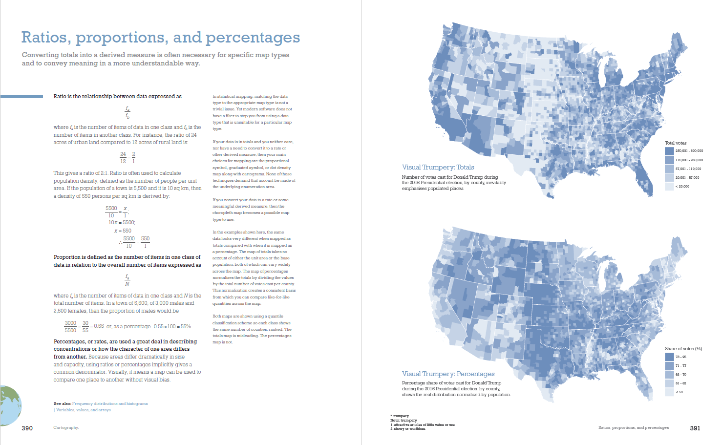 I started working at Esri in 2011 and still had the nagging idea of a book in the back of my mind. I eventually contacted Peter and Kathleen again and they recalled our original meeting. We set the ball rolling again…very slowly. Peter retired soon after and day-to-day work got in the way again but in 2015 we began thinking more seriously. Some words were already written as one of my last efforts in my previous University role was to design and develop an online MSc in GIS and a class in cartography was part of that. Lots of exercises and discussion to plunder. This gave me the bare bones of around 40 pages and we had something to run with. It turned out that those words weren’t nearly adequate enough but they were enough to interest various stakeholders, and external reviewers (thank you, whoever you are!) and I eventually got the green light to run with it. I guess I’ve been working pretty much full time on it for nearly 2 years (save the small matter of our Cartography MOOC to also develop).