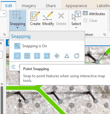 You’ll find the snapping environment settings on the Edit toolbar. Just make sure Point snapping is turned on for initial digitising. You’ll make heavy use of End, Vertex and Edge snapping later on when editing features to fine tune their position.