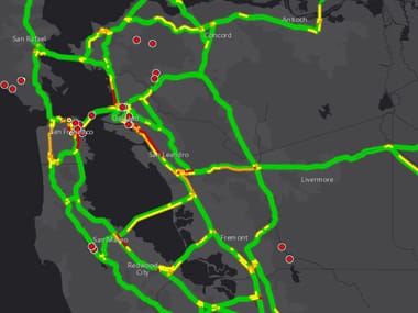 This map features live-feed layers for traffic across the United States, Canada, and Mexico.
